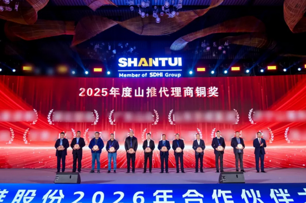 1月9日,以“厚道如山?推新致遠(yuǎn)”為主題的山推2026年合作伙伴大會(huì)在山東曲阜舉行。會(huì)上,山推股份黨委書(shū)記、董事長(zhǎng)李士振為山推AI智慧展廳開(kāi)館揭幕;總經(jīng)理張民作主旨報(bào)告。來(lái)自全國(guó)各地的400余位合作伙伴齊聚尼山,圍繞企業(yè)戰(zhàn)略轉(zhuǎn)型與產(chǎn)品迭代升級(jí)深入交流,共話合作情誼,共繪發(fā)展藍(lán)圖。