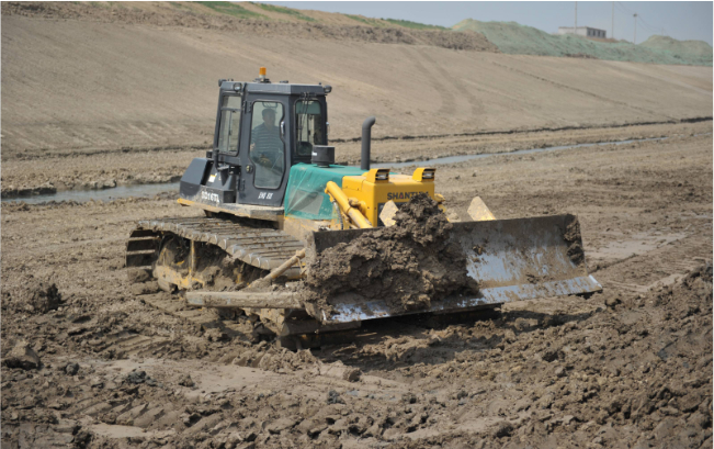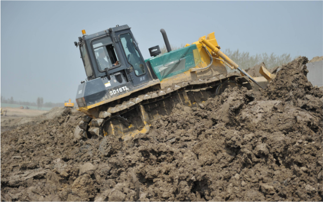 十幾輛山推SD16TL推土機(jī)在運(yùn)河河道內(nèi)作業(yè),“馬力大、省油、駕駛室還舒服”,推土機(jī)駕駛員毫不掩飾的夸贊這些推土機(jī)。SD16TL推土機(jī)超寬的三角型履帶避免了機(jī)器在軟土、濕地、沼澤地帶等松軟物料作業(yè)場所作業(yè)時的下陷,在河道拓寬、清淤等水利工程施工中具備無可比擬的作業(yè)能力。