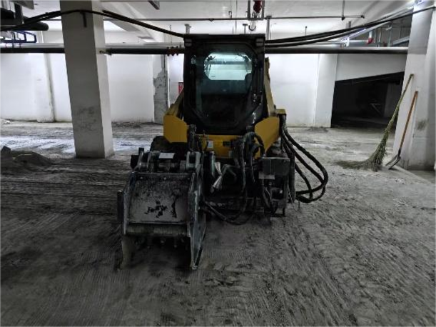 該小區(qū)地處市區(qū)核心板塊,周邊配套完善,地庫總面積約3萬平方米,整體為水泥硬化地面。為滿足后續(xù)自流平地坪施工的需求,地面必須經(jīng)過銑刨處理,確保材料與基礎(chǔ)面充分貼合。此前,客戶主要采用人工手推式銑刨鼓進(jìn)行處理,效率低、粉塵大、勞動(dòng)強(qiáng)度高,難以滿足項(xiàng)目對施工進(jìn)度和質(zhì)量的一致性要求。